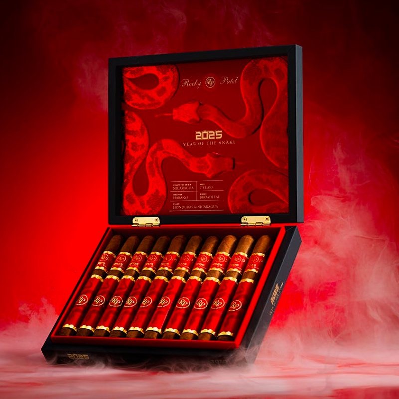 Celebrate the Chinese zodiac in style with the Rocky Patel Year of the Snake cigars—now available at 2GuysCigars.com! Following the success of last year’s Year of the Dragon release, Rocky Patel returns with a bold, limited-edition blend honoring the elegance and mystery of the serpent. Wrapped in a rich Nicaraguan Habano leaf and featuring a rare Nicaraguan Broadleaf binder over aged Honduran and Nicaraguan fillers, this medium to full-bodied cigar delivers a complex profile of cocoa, espresso, wood, and delicate floral notes. With only 6,000 boxes produced, the Year of the Snake is a must-have for collectors and connoisseurs alike. Don’t miss your chance to own this luxurious, small-batch release—order now at 2GuysCigars.com!