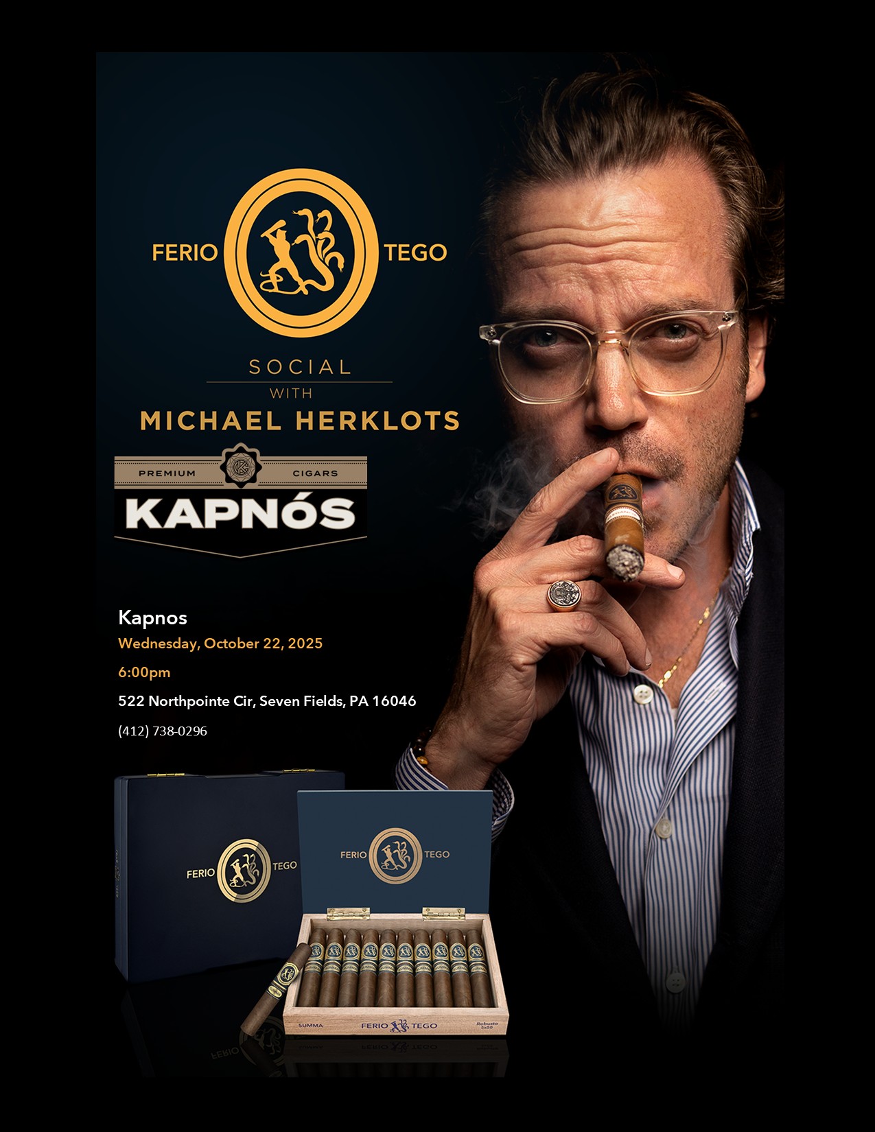 Join us for an unforgettable evening with Michael Herklots, Certified Master Tobacconist and co-founder of Ferio Tego—named “Brand of the Year” by Cigar Dojo and “New Company of the Year” by Halfwheel. With over 20 years in the premium cigar industry, Michael has shaped some of the most respected cigar portfolios in the world.